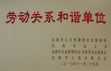 熱烈祝賀我司被評為2010年度“北海市勞動關(guān)系和諧單位”