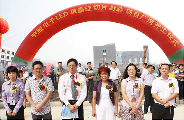 2011年10月28日上午,廣西北海中盟電子科技開發(fā)公司3號(hào)廠房舉行了隆重的開工儀式,該廠房建筑面積11000平方米,預(yù)計(jì)2012年7月底投入使用,主要從事LED封裝、單晶硅切片封裝、太陽(yáng)能路板生產(chǎn)。