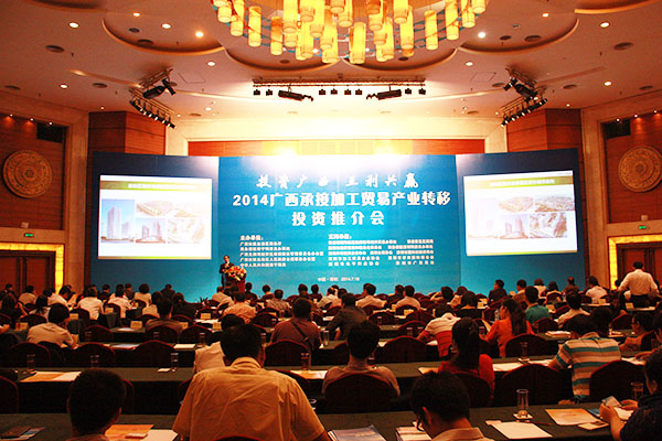 2014年7月16日,由自治區(qū)商務(wù)廳主辦的2014廣西承接加工貿(mào)易產(chǎn)業(yè)轉(zhuǎn)移投資推介會(huì)在深圳舉行。自治區(qū)政府副秘書長魏然,深圳市經(jīng)濟(jì)貿(mào)易和信息化委員會(huì)副主任高林等領(lǐng)導(dǎo)和嘉賓為會(huì)議致辭。自治區(qū)商務(wù)廳、北部灣辦分別從不同角度對廣西承接加工貿(mào)易產(chǎn)業(yè)轉(zhuǎn)移投資環(huán)境進(jìn)行了推介。北海、欽州、梧州、南寧四個(gè)國家級加工貿(mào)易梯度轉(zhuǎn)移重點(diǎn)承接地,欽州保稅港區(qū)、憑祥綜合保稅區(qū)、北海出口加工區(qū)、中馬欽州產(chǎn)業(yè)園、東興國家重點(diǎn)開發(fā)開放試驗(yàn)區(qū)、南寧高新技術(shù)產(chǎn)業(yè)開發(fā)區(qū)、中國電子北海產(chǎn)業(yè)園、梧州市粵桂合作特別實(shí)驗(yàn)區(qū)八個(gè)重點(diǎn)園區(qū),分別就各自的產(chǎn)業(yè)布局、投資環(huán)境、政策優(yōu)勢進(jìn)行了推介。香港特區(qū)政府駐粵辦、香港貿(mào)易發(fā)展局、深圳外商投資企業(yè)協(xié)會(huì)、深圳臺(tái)商協(xié)會(huì)、深圳市加工貿(mào)易企業(yè)協(xié)會(huì)、深圳市企業(yè)聯(lián)合會(huì)、深圳市電子行業(yè)協(xié)會(huì)及廣東各類加工貿(mào)易企業(yè)約400人出席了推介會(huì)。