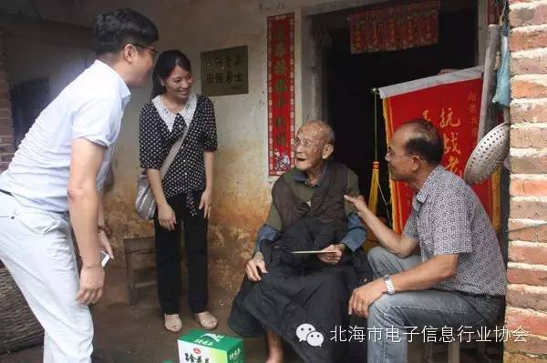 2015年8月15日,在這抗日戰(zhàn)爭(zhēng)勝利70周年之際,北海市電子信息行業(yè)協(xié)會(huì)與民革北海市委會(huì)聯(lián)合探望了三位抗戰(zhàn)老兵,送上慰問(wèn)金與慰問(wèn)品。大家傾聽(tīng)老兵講述那段槍林彈雨的抗戰(zhàn)經(jīng)歷,分享來(lái)之不易的和平發(fā)展成果,打著拍子為老兵獻(xiàn)唱革命歌曲。